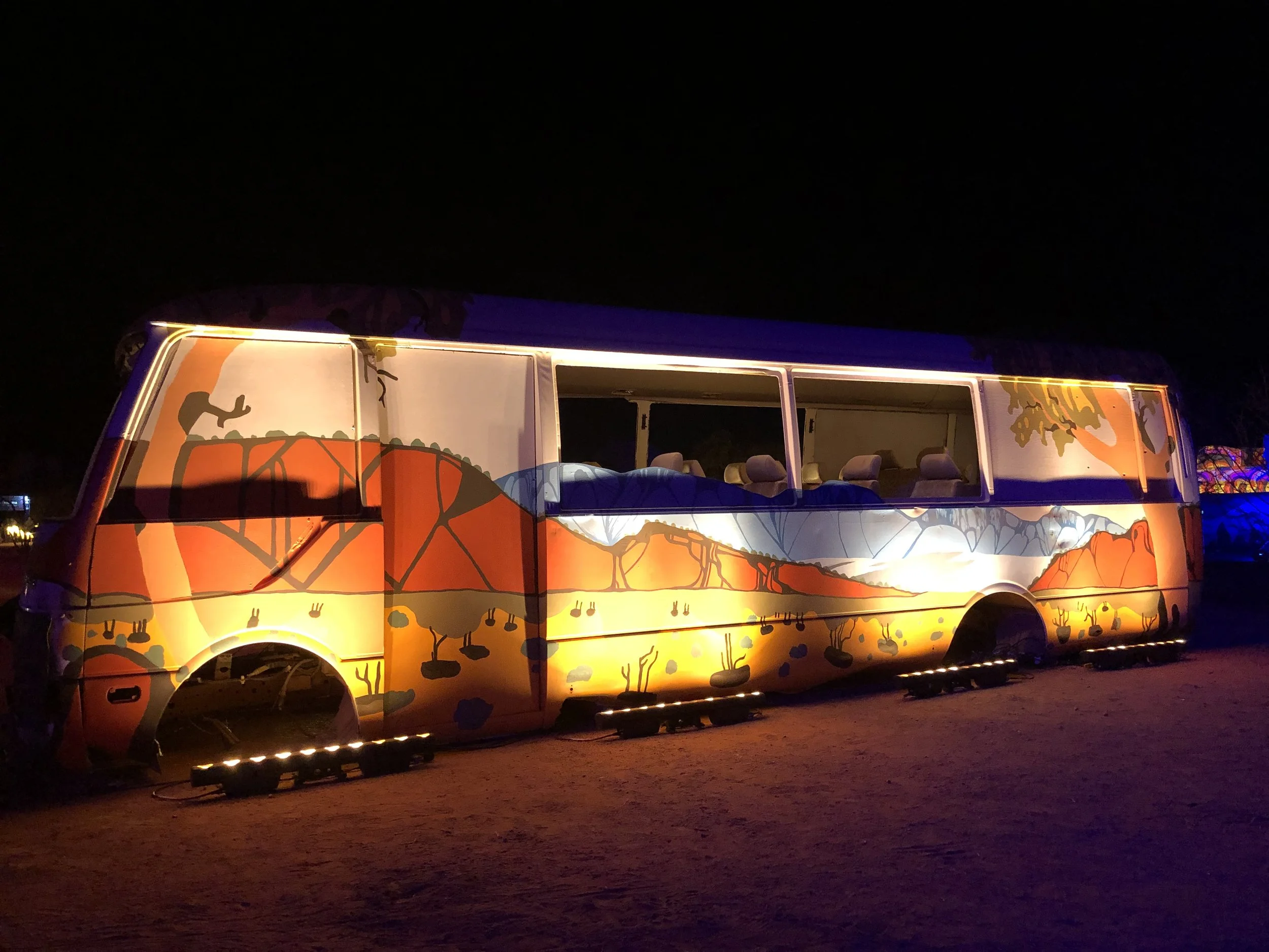 A giant seamless canvas, seven artists contributed to this immersive projection on the desert sand. You could run through the images and feel the movement of the lights as if the ground below you was shifting.