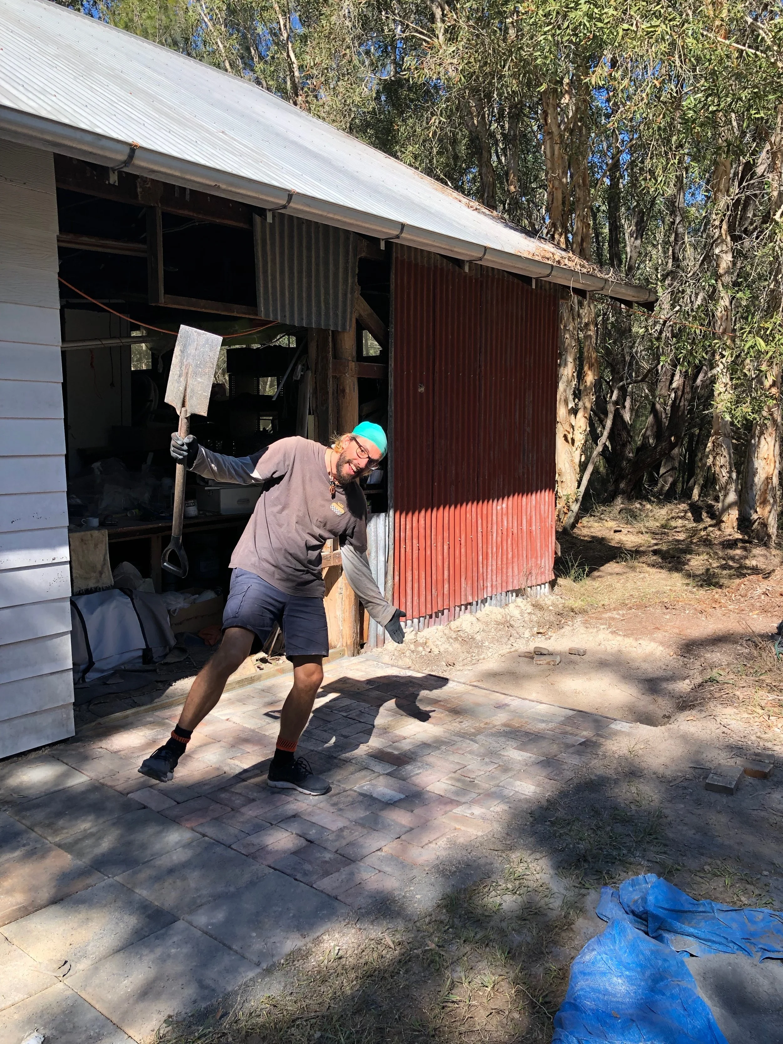 The man that owned the property before Judy and Ray left bricks scattered everywhere. For no apparent reason. He was a potter and had a kiln set up at the front of the property, but left bricks all along the fence line that made no sense. I spent 3 days digging up bricks, wheeling whole ones over to Ray to clean and Jo to use in the patio and the broken ones to the three door shed to use as ground filler. We gathered fallen tree limbs and pine needles to burn in order to create ash, which then could be used to balance the acidity of the soil.