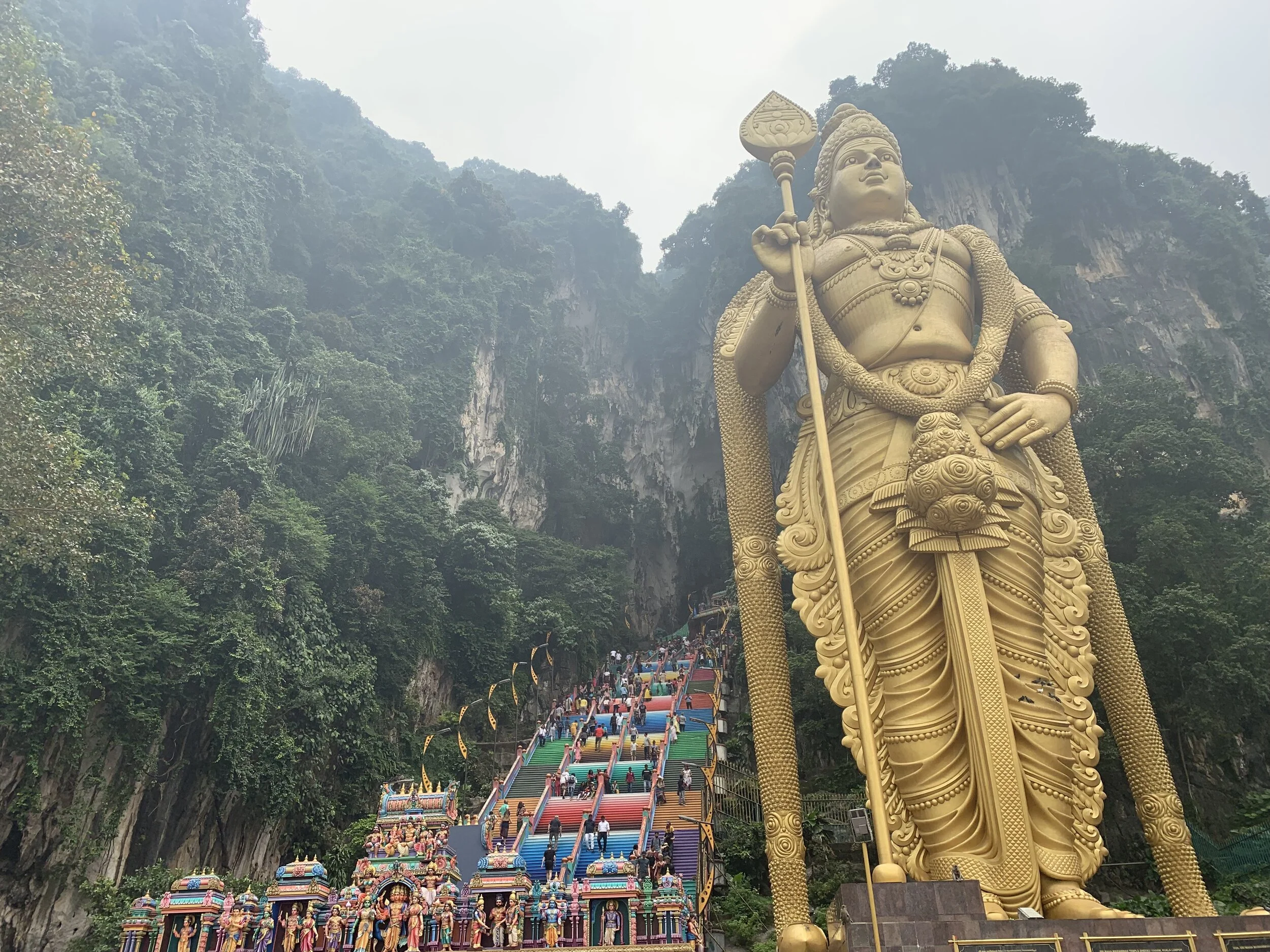 But, the travels must carry on. I had a list of things I wanted to do and see as well as recommendations from my friend who had grown up here. By far my favorite day was spent taking the train to see Batu Caves. The colors and details at all the temples and shrines I visited took my breath away. In order to be respectful, the women had to either wear clothing that covered their knees or wrap a scarf around their waist. When it’s 90 degrees and 100% humidity, the thought of wearing long pants is just not an option, so I went in favor of the scarf around the waist.