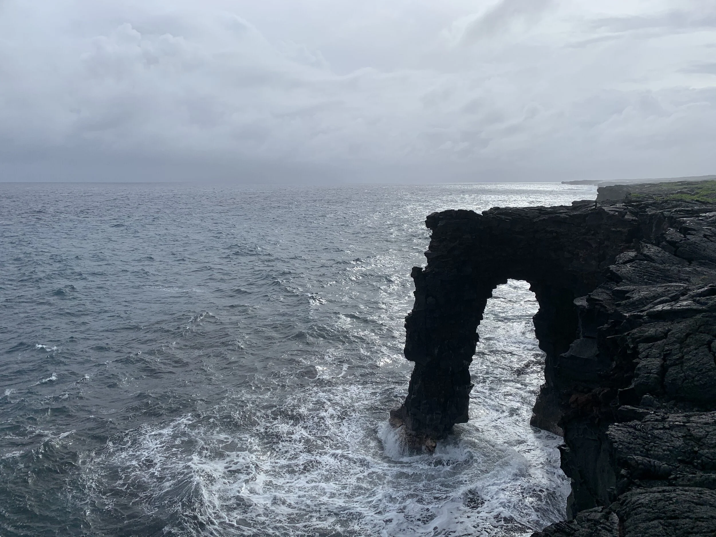 Our day exploring the Volcano National Park happened to be pouring rain, but this was fairly typical for January weather and our time on the island in general. We went to the edge of the park to walk to the XXX drawings/burial site/etc and the coast to see the ARCH.
