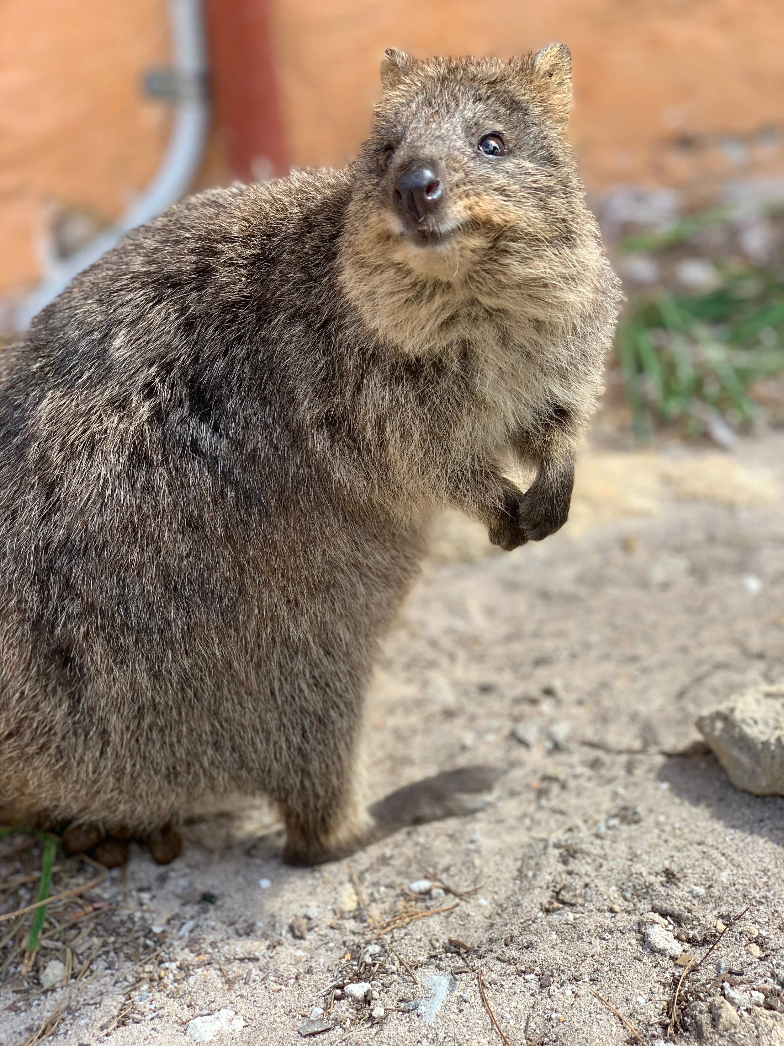 The quokka is the only mammal native to the island. Part of the marsupial family, these cuties move like a kangaroo but are much smaller and slightly rat-like in appearance. But, they have an adorable smile that makes tourists act ridiculous, laying on the ground to get a great selfie…and yes I did this. It’s very important to not touch the animal or feed them human food, you can see the negative impact tourists have had through the patchiness of adult’s fur.