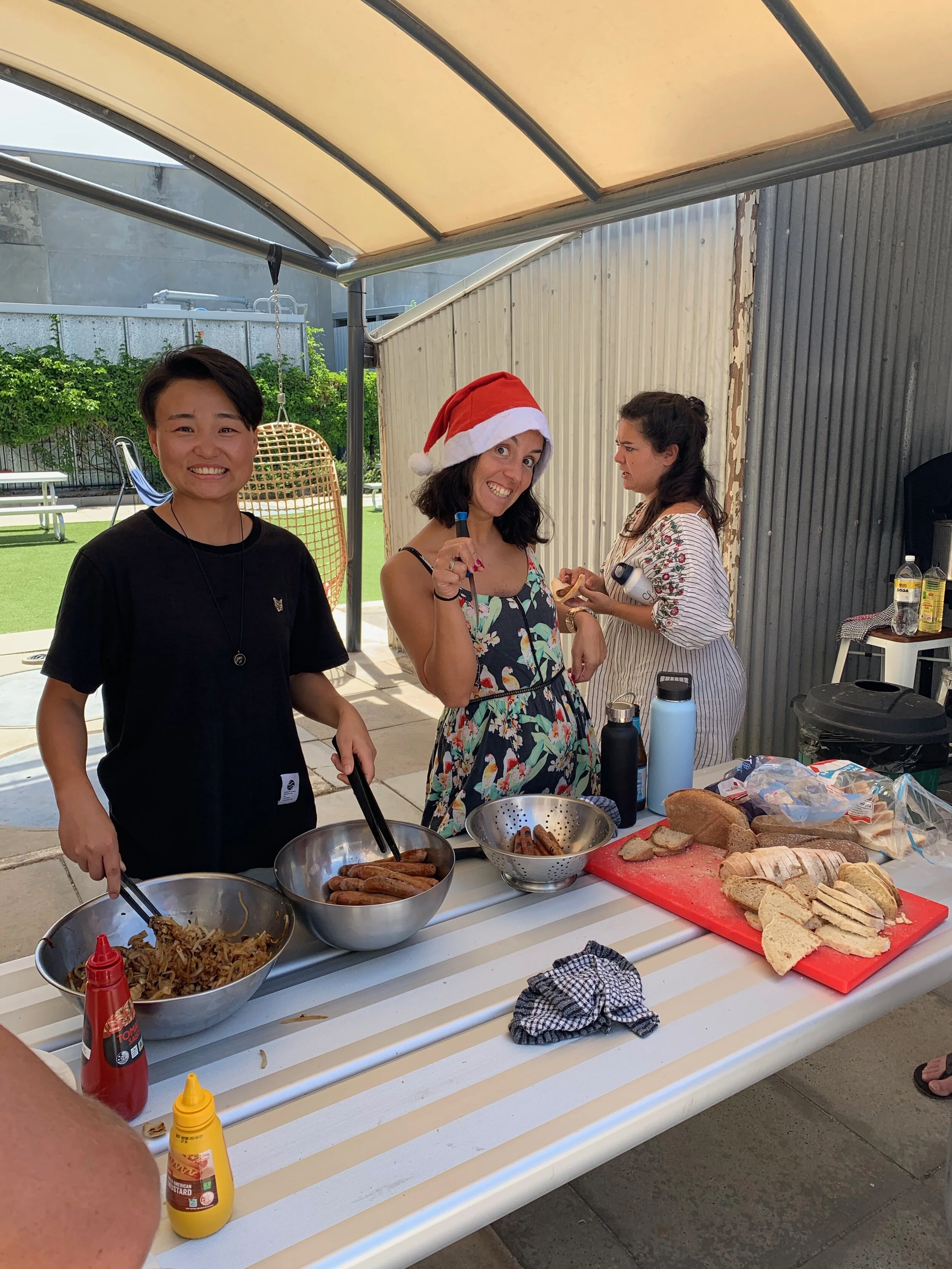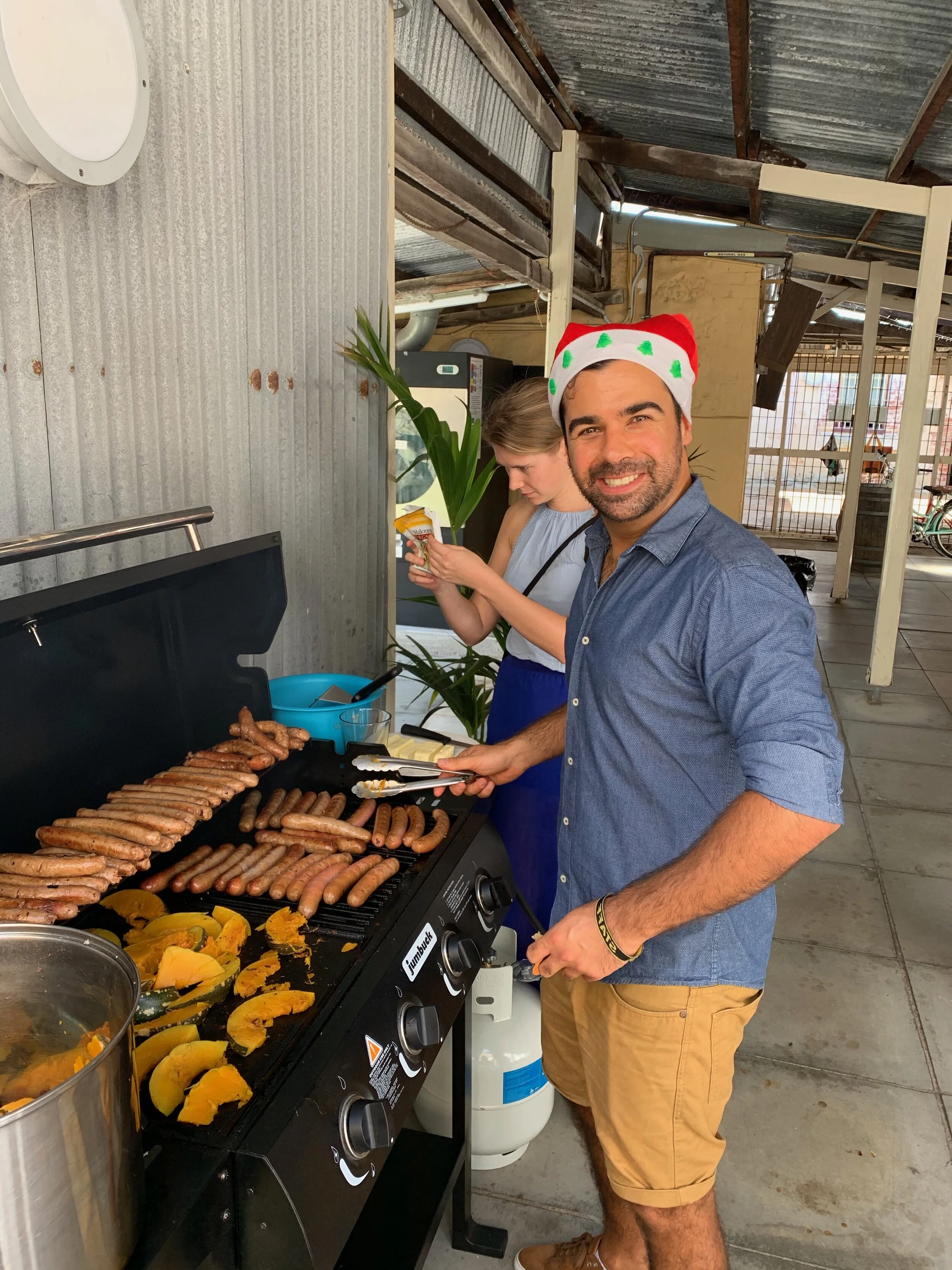 Staying in an international backpacker’s hostel, we made a point to try to celebrate everyone’s traditions. For a lot of countries, Christmas is actually celebrated on the 24th. In Belgium, it’s traditional at midnight to shake everyone’s hands, kiss both cheeks, and say “Peace be with you.” We listened to songs from around the world. Then, we made our own celebration Freo style! We opened the hostel to current and past guests, hosted a BBQ during the day, and then headed to the beach for a swim and sunset. I had to work from 7am-3pm, but with the lunchtime BBQ, I could join in the party in between duties at the front desk.