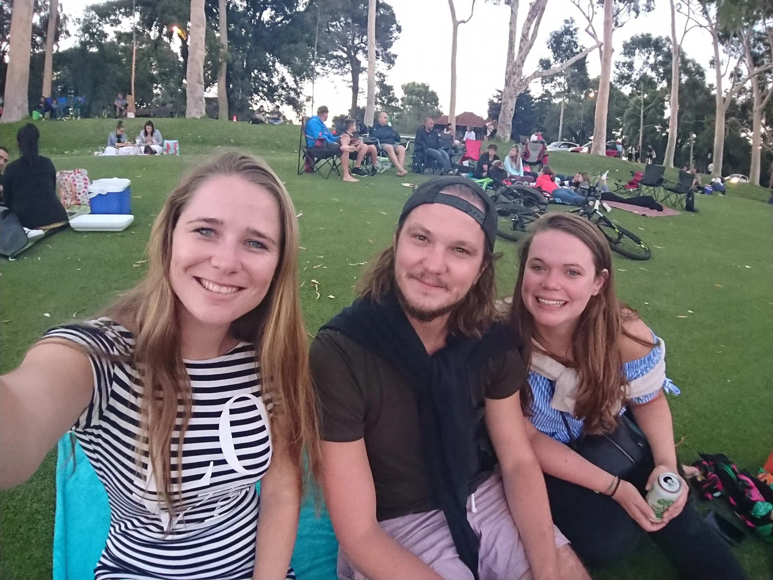 New Year’s Eve. I’ve never been one for a crazy night out, paid entrance at a bar or club…and you can bet on a backpacker’s budget this wasn’t the year that would change. Instead, we planned to spend the evening at King’s Park in Perth with drinks and a picnic to watch fireworks over the city. We went from 3 of us, to joining Stefano from Rottnest back from his travels up north along with people he met along the way, to friends of friends of friends joining to make a group of 30+ people. Exactly how I want to ring in the New Year!